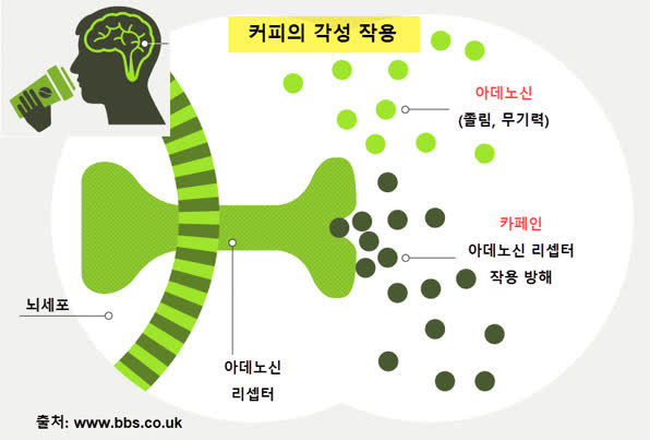 카페인: 장운동을 촉진하고, 유해균의 생존을 억제하는 것으로 알려져 있다.