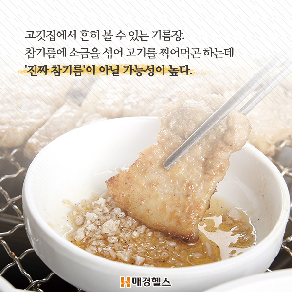 고기를 찍었을 때 기름이 두텁게 묻어남: 인공 향미유는 점성이 높아 고기에 쉽게 붙는다. 반면 천연 기름은 빠르게 흘러내린다.