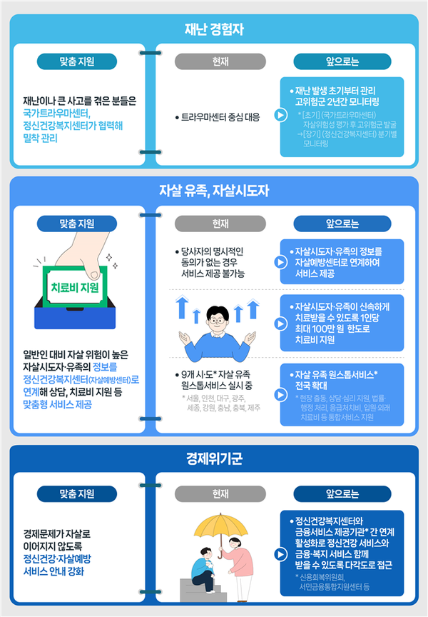 자살 유도 정보에 노출된 이용자를 위한 심리 상담과 개입이 중요하다. 인터넷상에서 위험한 검색을 감지한 경우, 실시간으로 상담기관과 연결되거나 보호자에게 알림이 가는 시스템도 검토해볼 수 있다.