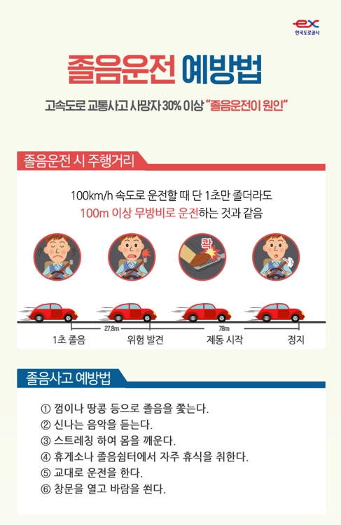 단 2~3초의 눈 깜빡임이 80m 이상을 무방비 상태로 달리는 결과를 초래할 수 있다. 이러한 졸음운전 사고는 대부분 예측할 수 없고, 사전 조치가 없으면 피해는 치명적이다.