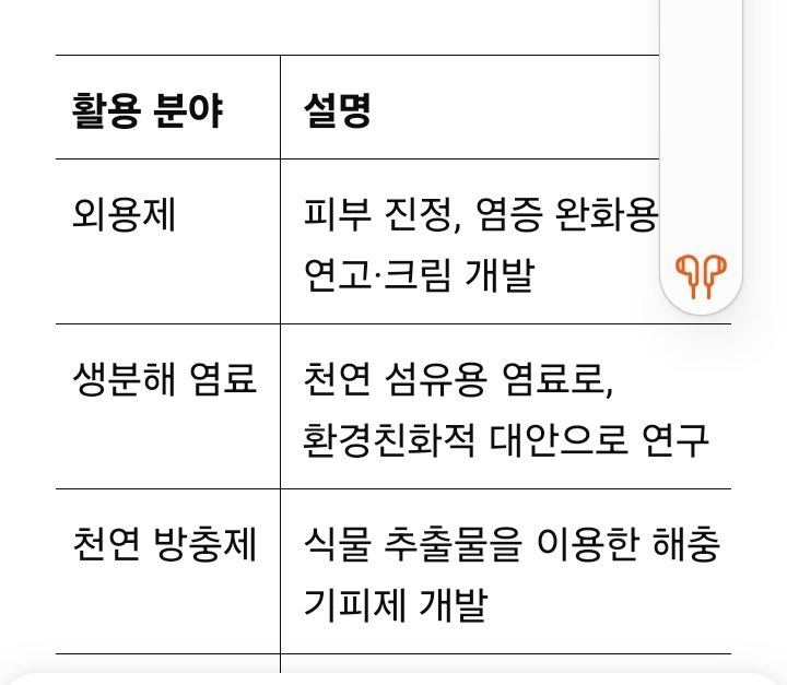 그렇다면 꼭두서니는 이제 완전히 폐기되어야 하는 식물일까요? 그렇지만은 않습니다. 앞서 언급했듯 꼭두서니의 안트라퀴논 유도체는 항균, 항염, 항암 등의 생리활성을 보이며, 합성 화학물질에 비해 분해 가능성과 생태 친화성이 높은 물질로 간주됩니다. 따라서 현재는 먹는 식품보다는 외용제, 생분해 염료, 천연 방충제, 세포 실험용 항산화 소재 등의 방향으로 활용 연구가 지속되고 있습니다.