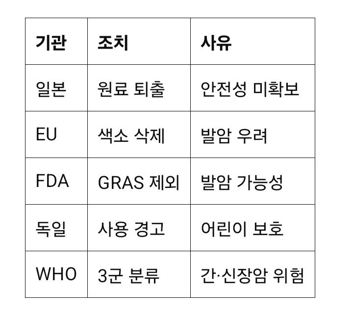 이러한 법적 조치의 공통된 배경은 장기적 섭취 시 독성 우려가 분명하다는 점, 특히 어린이, 임산부, 면역저하자 등 민감 집단에 대한 위해가 클 수 있다는 점입니다. 또한 식품 안전에 대한 국제 기준 강화에 따라, 전통적 사용 이력만으로 안전성을 보장하기 어렵다는 과학적 입장이 반영된 결과이기도 합니다.