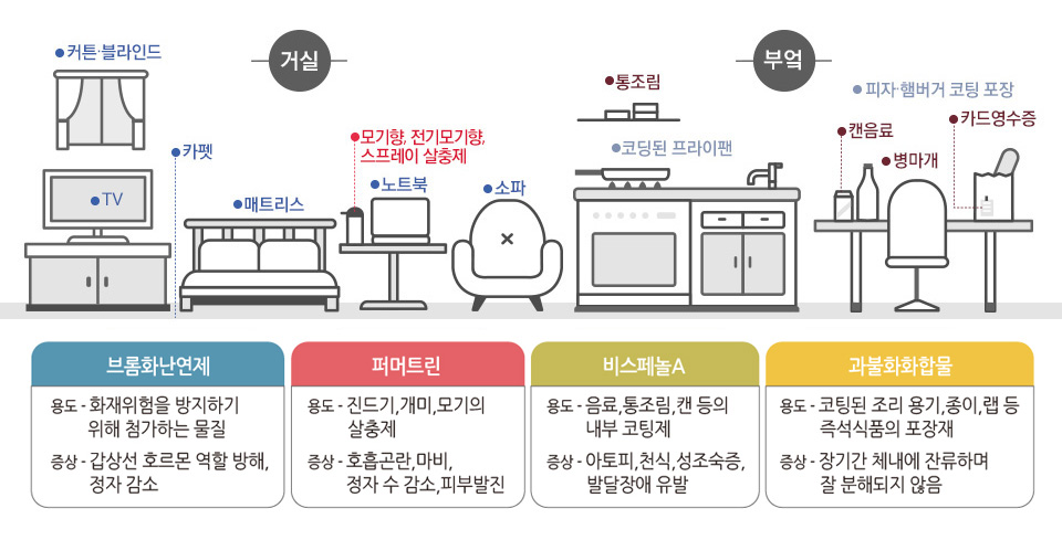 영유아 및 아동: 장난감·기저귀 등으로 인한 직접 노출이 많고, 대사 능력이 미성숙하여 축적되기 쉽다.