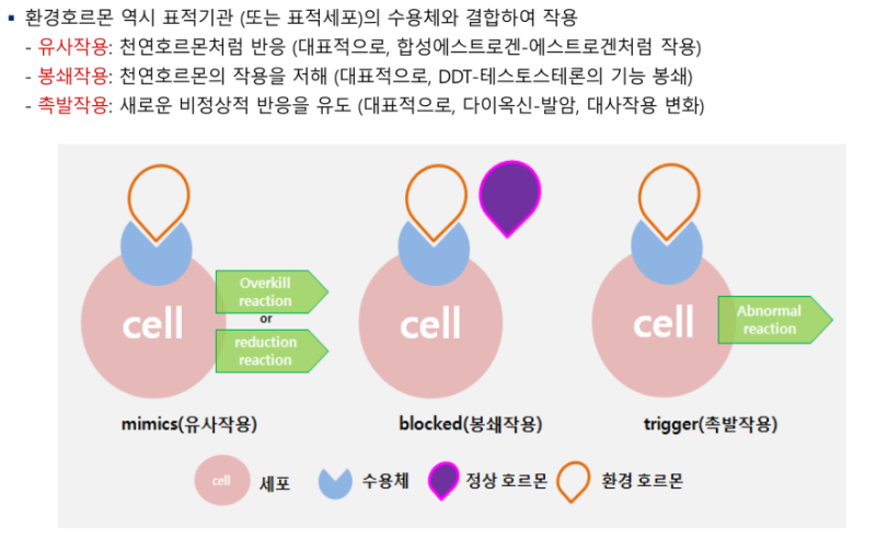 호르몬 수용체와 결합하거나 차단: 에스트로겐, 안드로겐, 갑상선 호르몬 기능에 간섭
