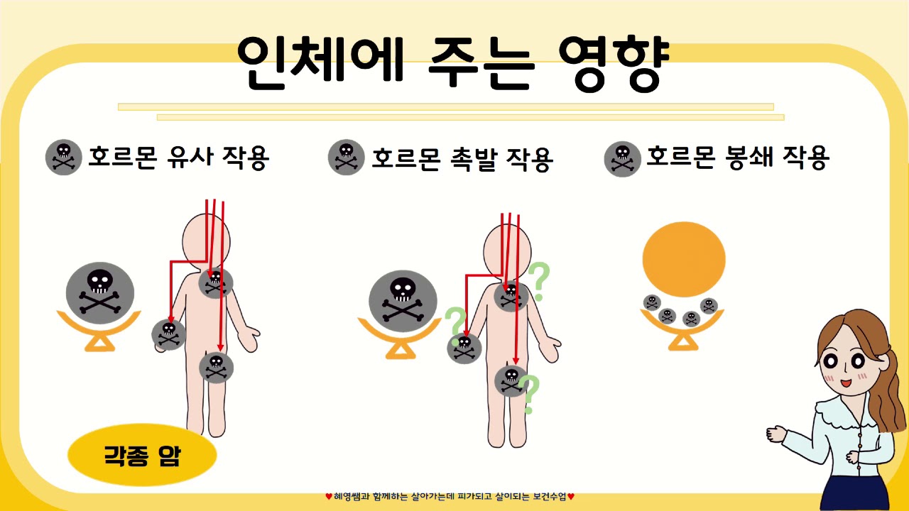 이러한 메커니즘은 성조숙증, 생식기 기형, 불임, 갑상선 기능 이상 등 다양한 건강 문제뿐 아니라 심혈관계 질환과도 연관이 있다.