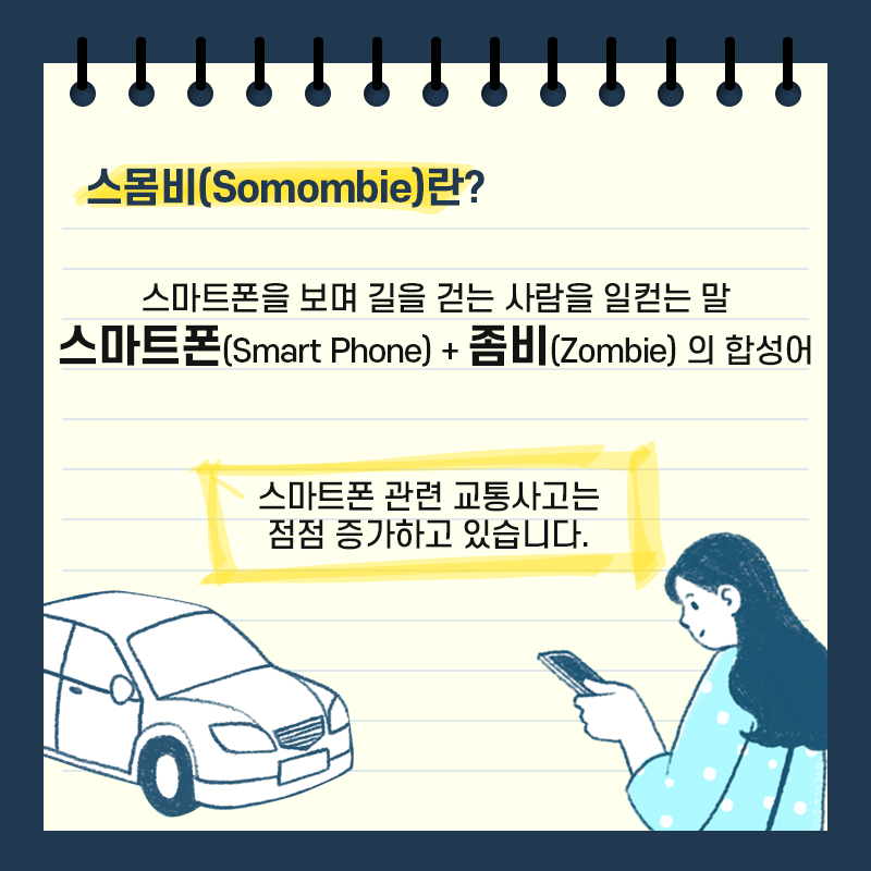 현대인의 일상은 스마트폰 없이는 상상하기 어려울 정도로 바뀌었다. 통화, 문자, SNS, 인터넷 검색, 뉴스, 게임, 업무 처리 등 거의 모든 것이 손안의 작은 기계로 가능해졌다. 이제 스마트폰은 단순한 통신 기기를 넘어 ‘제2의 뇌’라고 불릴 만큼 개인화되고 생활에 깊숙이 침투한 도구다. 하지만 이러한 스마트폰 의존도가 높아지면서 새로운 사회적 문제도 함께 대두되고 있다. 그중 하나가 바로 ‘스몸비(Smombie)’ 현상이다.