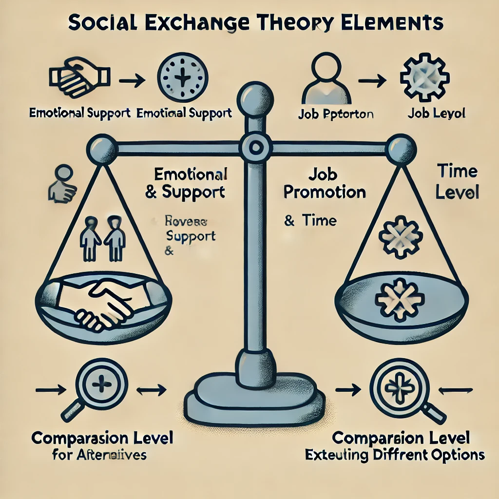 사회심리학에서 매우 중요한 개념인 호혜성(Reciprocity) 은 인간 사회를 지탱하는 기본 규칙입니다. 사회교환이론(Social Exchange Theory, Thibaut & Kelley)은 인간관계가 일종의 '교환'이며, 균형 잡힌 주고받음이 관계의 지속을 좌우한다고 설명합니다.