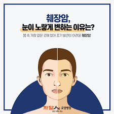 황달: 췌장암이 담도를 눌러 담즙 배출이 막히면 피부와 눈이 노랗게 변하는 황달 증상이 발생합니다.