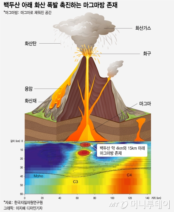 백두산은 여전히 분화 에너지를 품고 있는 ‘활화산’이다. 2010년대 이후 백두산 하부 마그마 방에 대한 연구가 활발히 진행되면서, 그 내부에 상당한 양의 용융 상태 마그마가 존재한다는 증거가 속속 발견되고 있다. 특히 2018년 발표된 한 논문에 따르면, 지하 약 10~20km 깊이에 마그마가 존재하고 있으며, 이는 과거 대분화와 유사한 조건이라는 경고를 담고 있다.