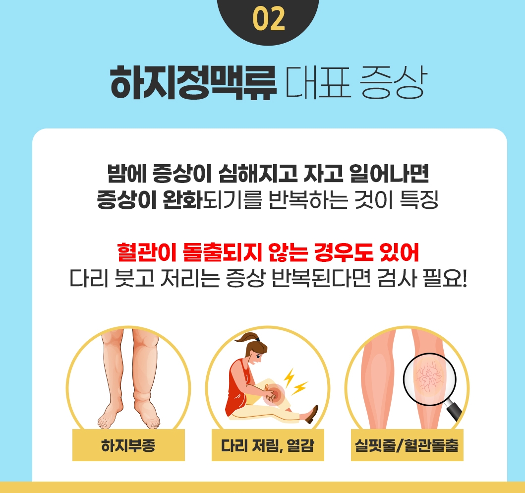 이 중 2개 이상에 해당하고, 특히 냉감과 무거움을 동시에 느낀다면 빠른 시일 내에 혈관외과 전문의를 찾아 검사를 받아보는 것이 바람직하다.