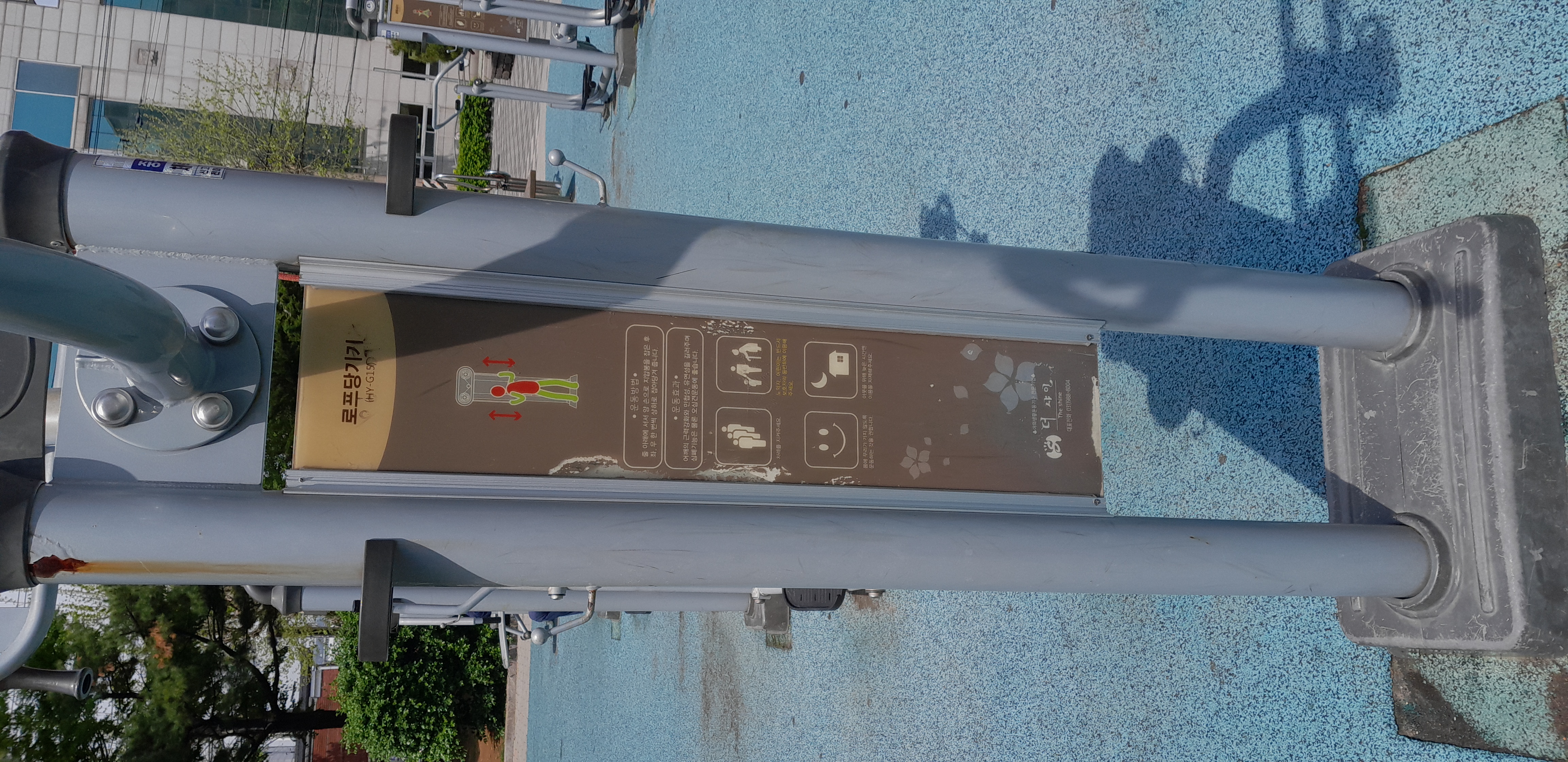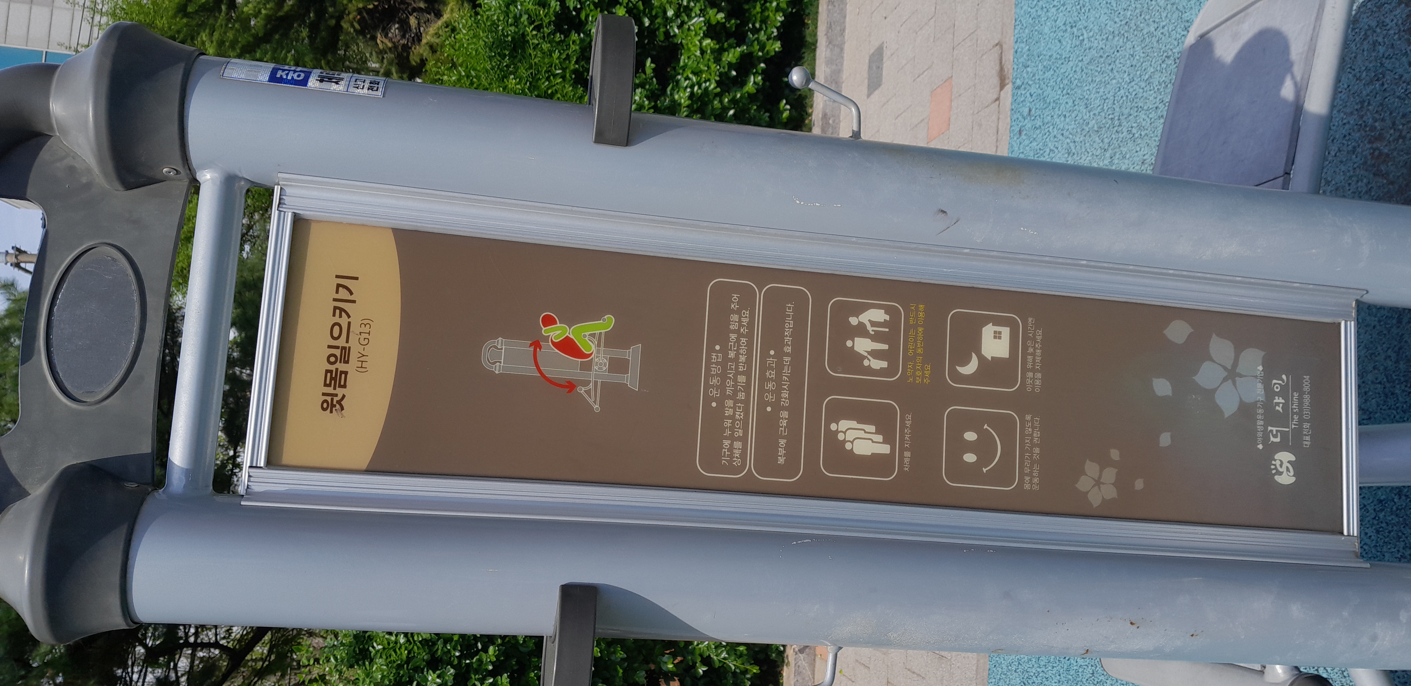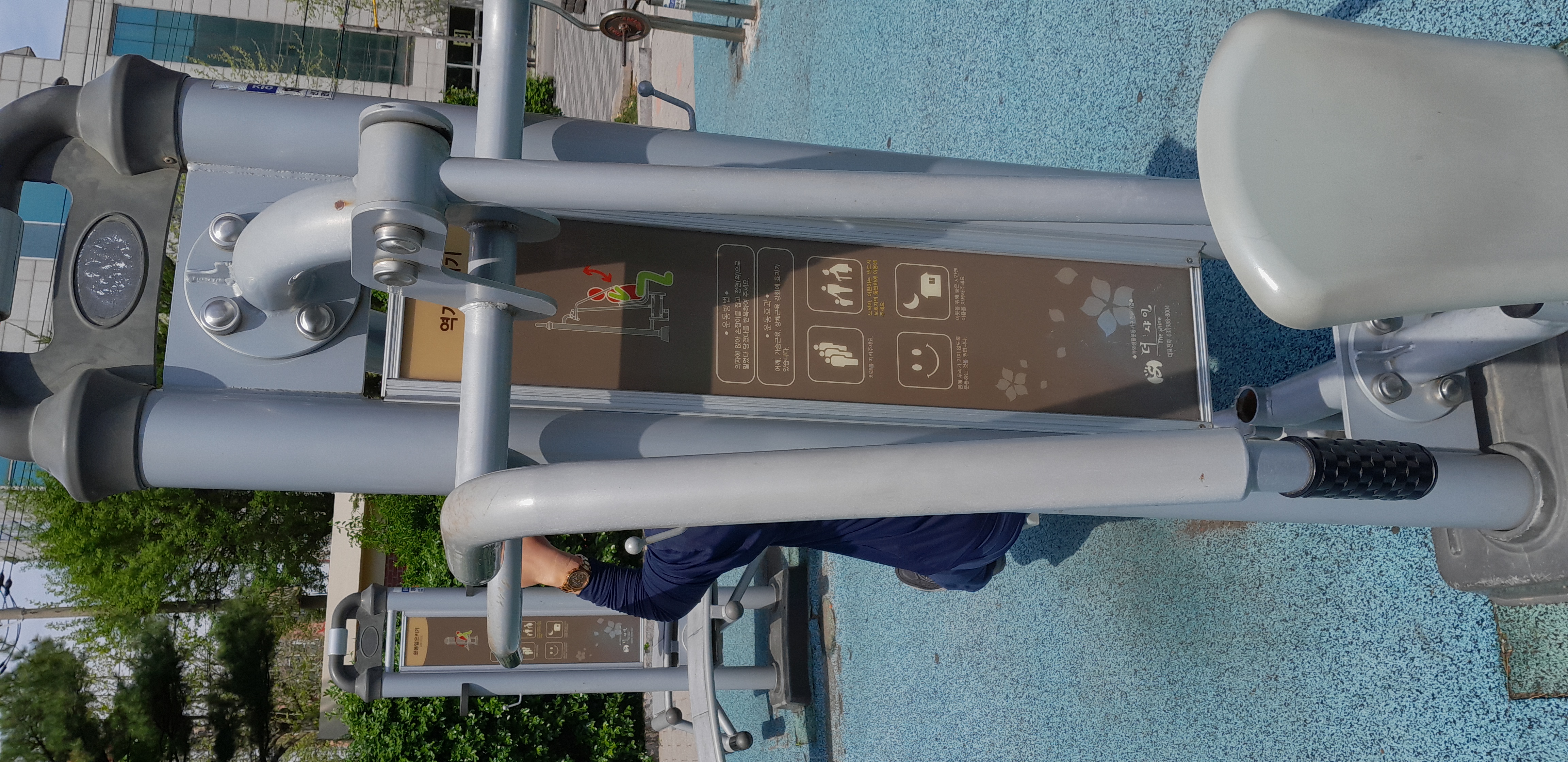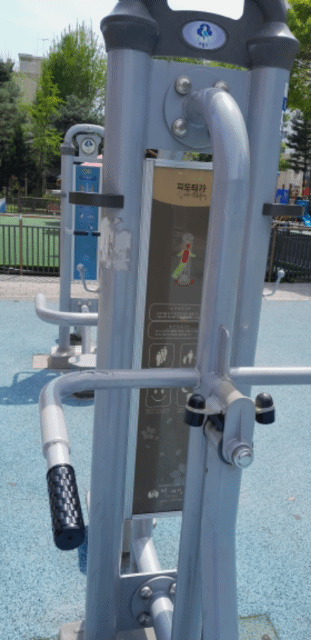 이 사진에 있는 기구는 로우당기기입니다. 상단에 기구명 "로우당기기 (HY-G157)"라고 적혀 있고, 그 아래에는 사용 방법과 주의사항 등이 안내되어 있습니다. 다음은 주요 내용입니다: 기구명: 로우당기기 (HY-G157) 사용 방법: 손잡이를 잡고 앉은 상태에서 양팔로 손잡이를 뒤로 당겼다가 놓는 동작을 반복합니다. 위의 그림처럼 등을 펴고 올바른 자세를 유지하면서 당기기 운동을 합니다. 운동 효과: 등과 팔의 근력을 강화시켜 줍니다. 자세 교정 및 상체 근육 발달에 도움을 줍니다. 주의사항: 한 사람씩 사용하십시오. 어린이나 노약자는 보호자와 함께 사용하십시오. 과도한 운동은 금물입니다. 야간 사용 시 주의하십시오. 이 기구는 보통 공원에 설치된 실외 운동기구로, 등과 팔 근육을 강화하기에 적합합니다. 사용 시 반동 없이 천천히 움직이며, 호흡을 일정하게 유지하는 것이 중요합니다.윗몸일으키기 이 이미지는 한국어로 된 사용 설명서가 있는 야외 운동 기구를 보여줍니다. 공원이나 야외 체육 공간 등 공공 장소에서 사용하는 피트니스 장비로 보입니다. 표지판에는 다음과 같은 내용이 포함되어 있습니다: 기구 사용 방법을 보여주는 그림 안전 수칙 또는 올바른 사용법에 대한 설명 하단에 제조사 정보나 연락처 등 이 기구는 근력 강화나 유연성 향상 등 특정 운동을 위한 용도로 설계된 것으로 보입니다. 항상 안전을 위해 설명서에 나온 지침을 따라 사용하세요.물론입니다! 공중걷기 사용법에 대해 자세히 설명드리겠습니다. 1. 준비 자세: - 기구 앞에 서서 발을 어깨너비만큼 벌립니다. - 손잡이를 양손으로 잡습니다. 2. 운동 시작: - 몸을 약간 기울입니다. 이때 허리를 곧게 펴고, 복부에 힘을 주어 안정된 자세를 유지합니다. - 손잡이를 잡고 팔을 위아래로 움직입니다. 팔을 당길 때는 어깨와 등을 사용하여 힘을 주고, 놓을 때는 천천히 제자리로 돌아옵니다. 3. 동작 주의사항: - 급격하게 움직이지 않도록 하고, 유연하게 운동합니다. - 가능한 경우 운동 범위를 최대한 넓게 하여 근육을 효과적으로 사용합니다. - 한 세트를 10~15회 반복하고, 필요한 경우 2~3세트를 추가로 더 수행합니다. 4. 마무리: - 운동 후에는 충분히 스트레칭을 통해 근육의 긴장을 풀어주는 것이 좋습니다. 이 기구는 상체 근력 강화에 유용하며, 특히 어깨와 팔, 등 근육을 효과적으로 발달시킬 수 있습니다. 운동을 할 때는 올바른 자세를 유지하는 것이 중요합니다.이 기구는 철봉이라는 기구로서 일반적으로 이런 기구는 체력 증진이나 유연성 향상을 도와주는 기능을 가지고 있습니다. 주요 쓰임새는 다음과 같습니다: 1. 균형 감각 향상: 다양한 동작을 통해 균형을 유지하고 몸의 코어를 강화하는 데 도움을 줍니다. 2. 근력 강화: 특히 하체 근육을 강화하는 데 효과적입니다. 3. 유연성 훈련: 여러 가지 스트레칭 동작을 통해 유연성을 향상시킬 수 있습니다. 이 기구의 사용 방법은 사용자에게 대부분 그림으로 안내되어 있기 때문에 쉽게 따라 할 수 있도록 설계되어 있습니다.이 기구의 작동 방식은 일반적으로 다음과 같습니다: 1. 준비 자세: 기구에 서서 양손으로 핸들을 잡습니다. 발은 어깨너비만큼 벌리고 안정된 자세를 유지합니다. 2. 운동 시작: 핸들을 잡고 팔을 앞으로 펴거나 구부립니다. 이 과정에서 어깨와 팔의 힘을 사용하여 운동을 합니다. 3. 반복: 팔을 펴고 구부리는 동작을 반복하면서 근육에 부담을 주어 근력 향상과 체력을 발전시킵니다. 4. 운동 종료: 운동이 끝나면 천천히 원래 자세로 돌아가고, 충분한 스트레칭을 통해 근육을 안정시킵니다. 이 기구는 주로 팔, 어깨, 등의 근육을 강화하는 데 효과적이며, 균형과 협응력 향상에도 도움이 됩니다. 사용 중에는 올바른 자세를 유지하고, 안전을 위해 기구의 사용법을 잘 숙지하는 것이 중요합니다.