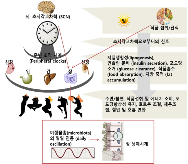 한때 지방은 단순히 열량을 저장하는 수동적인 조직으로 인식되었으나, 지금은 **호르몬과 대사물질을 분비하는 ‘내분비 기관’**으로 간주된다. 특히 지방세포는 생체시계 유전자인 Bmal1, Per2, Rev-erbα 등을 발현하며, 체내 대사 리듬에 적극적으로 관여한다.