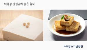 두부는 대두 단백질이 풍부한 식품입니다. 대두 단백질은 동물성 단백질보다 지방 함량이 낮고, 염증 완화에 도움이 되는 이소플라본이 함유되어 있습니다. 특히 무릎 관절염의 염증 반응을 줄이고, 연골 손상을 예방하는 데 긍정적인 영향을 줍니다.