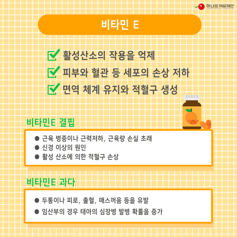 일부 연구에서는 고용량 비타민 E 섭취가 암, 심혈관 질환 사망률을 오히려 증가시킨다고 보고되었다.