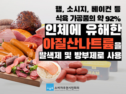 햄, 소시지, 베이컨 등은 보관성과 맛을 위해 **아질산나트륨(NaNO2)**과 같은 발색제 및 보존제가 사용됩니다. 이 물질은 체내에서 단백질과 반응하여 **니트로사민(N-nitroso compounds)**이라는 강력한 발암 물질로 전환될 수 있습니다.