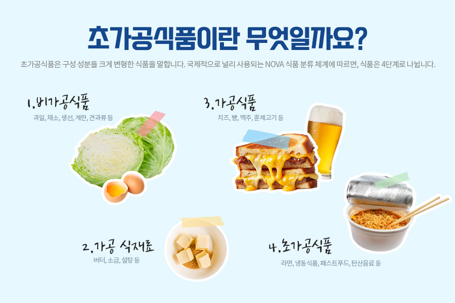 서울대 식품영양학과 연구: 한국인의 초가공식품 섭취가 비만, 당뇨, 고혈압과 유의한 상관관계를 보였고, 40대 이후 질병 이환률 증가와 연결됨.