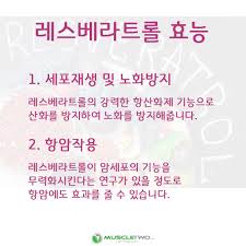 레스베라트롤은 포도 껍질과 적포도주에 함유된 폴리페놀로, 세포 수명을 조절하는 단백질인 시르투인(SIRT1)을 활성화시킨다. 이는 세포 스트레스 저항성을 높이고, 염증을 줄이며, 노화를 늦추는 데 기여한다.