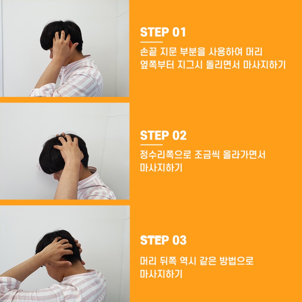 손톱이 아닌 손끝으로 두피 마사지: 강한 자극은 오히려 두피를 손상시킴.