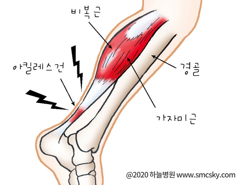 종아리에 쥐가 났을 때는 다리를 펴고 발끝을 몸 쪽으로 당기는 동작, 즉 수축된 근육을 스트레칭하는 것이 가장 효과적인 대응 방법입니다. 이는 비복근뿐 아니라 그 아래 깊은 곳에 위치한 가자미근의 과도한 수축을 완화시켜 주는 데도 도움이 됩니다.