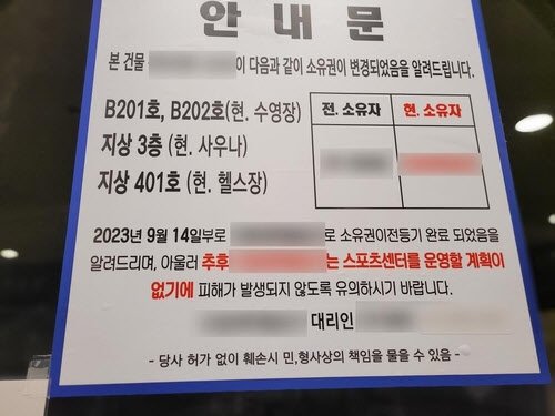 체육시설 휴·폐업 시 회원 통지 의무화 제도