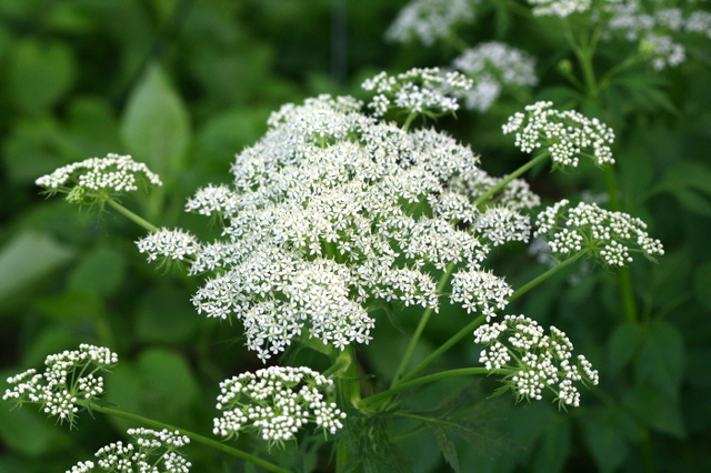꽃은 늦봄에서 여름 초입인 5월에서 6월 사이에 피며, 흰색의 복산형꽃차례(umbel)를 형성합니다. 이 꽃은 벌과 나비를 유인하며, 자연 생태계에서 중요한 밀원식물 역할도 겸합니다.