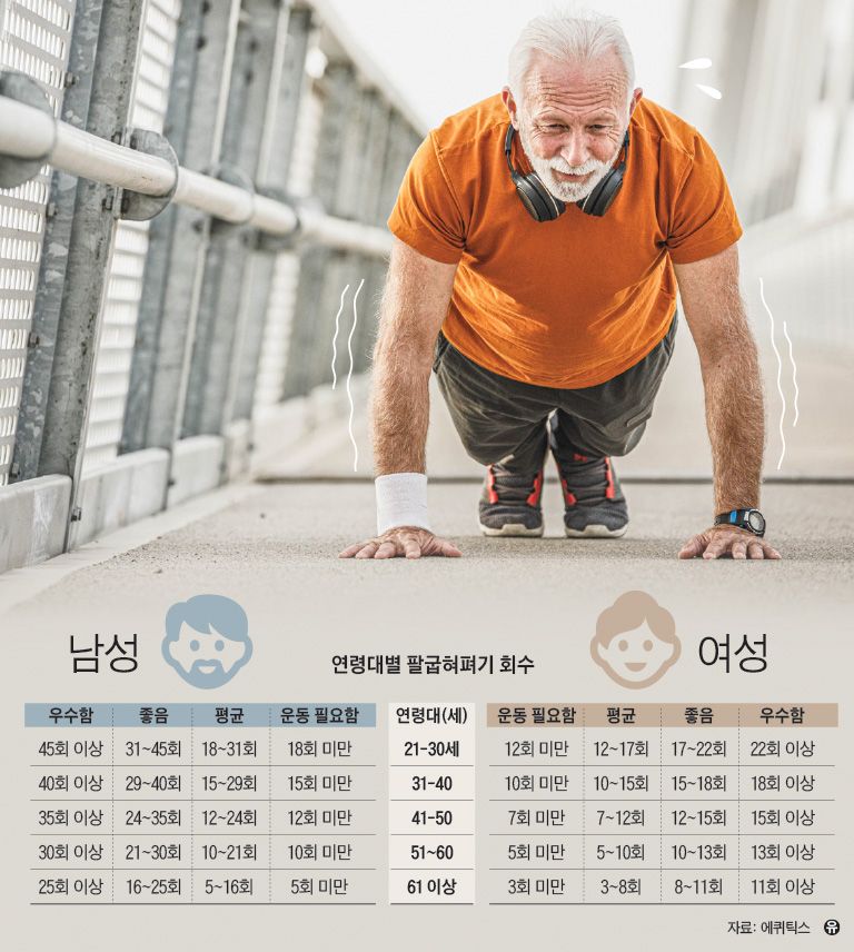 흥미로운 점은 팔굽혀펴기를 잘 못하던 참가자들도 벽을 활용한 ‘벽 팔굽혀펴기’나 무릎을 대고 하는 ‘무릎 팔굽혀펴기’로 충분한 효과를 얻었다는 것이다.