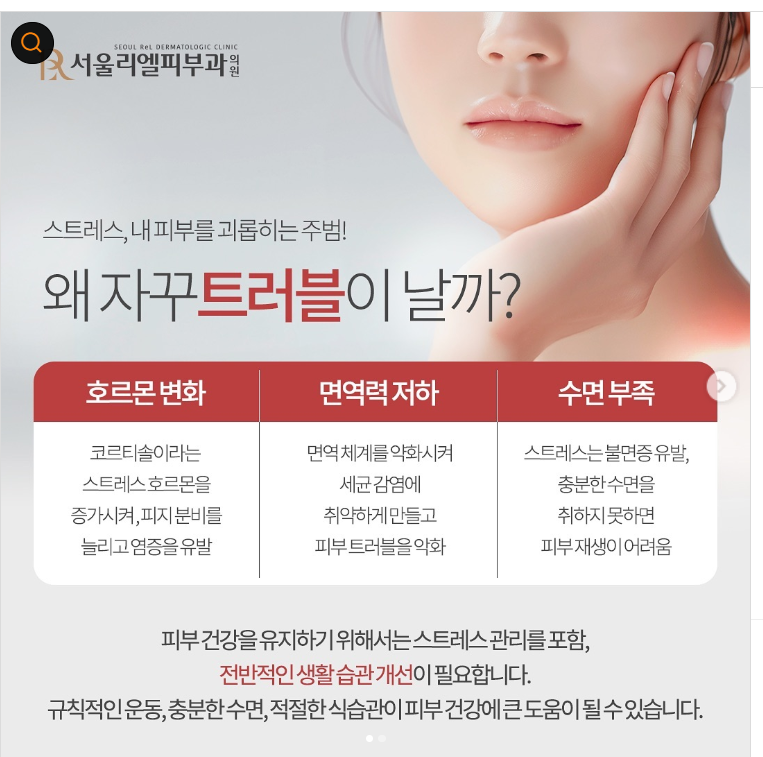 👉 아래 글 참고https://honeypig66.tistory.com/entry/%ED%94%BC%EB%B6%80%EB%B3%91%EA%B3%BC-%EC%8A%A4%ED%8A%B8%EB%A0%88%EC%8A%A4%C2%B7%EC%88%98%EB%A9%B4%EC%9D%98-%EA%B4%80%EA%B3%84-%EB%B0%98%EB%B3%B5%EB%90%98%EB%8A%94-%ED%94%BC%EB%B6%80%EC%A7%88%ED%99%98%EC%9D%98-%EC%9B%90%EC%9D%B8