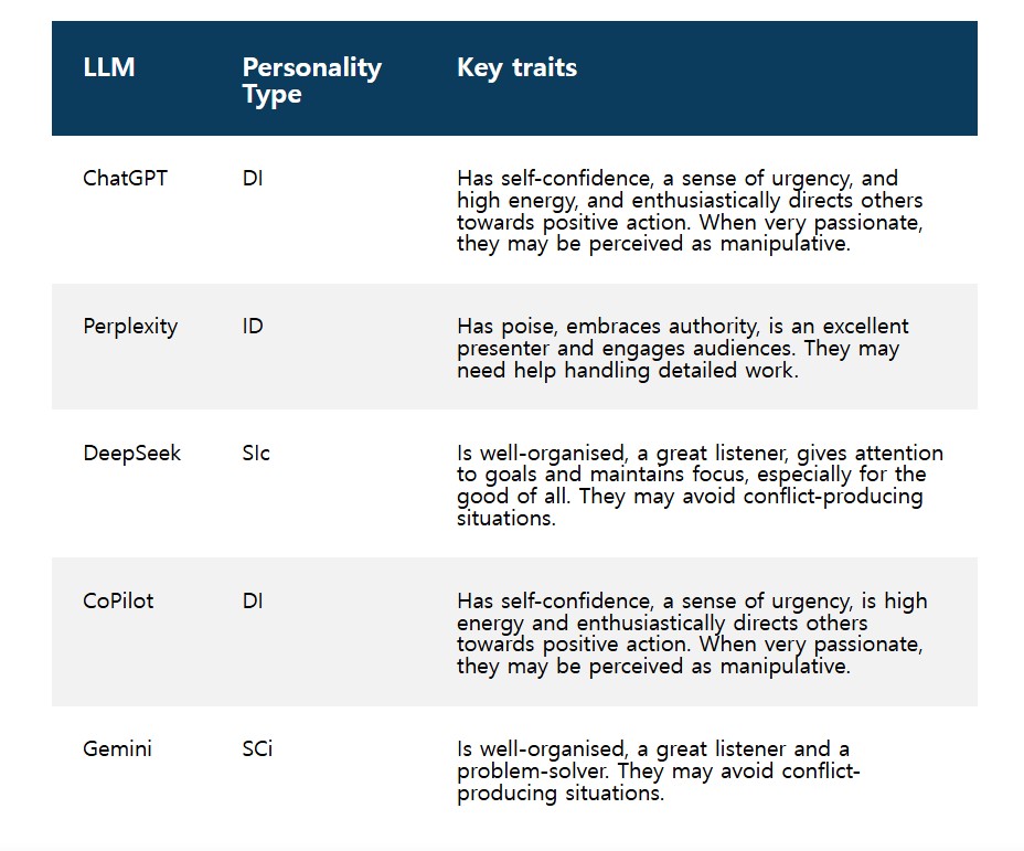 3) 미국의 성격유형 검사 전문 온라인 DISC 프로파일은 최근 AI 챗봇의 성격을 테스트