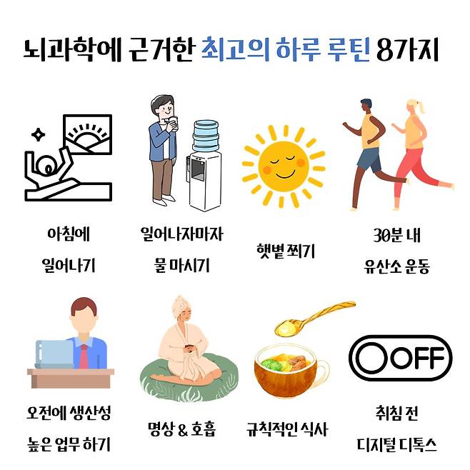 - “매일 같은 시간에 자고, 아침엔 햇빛을 봅니다.”