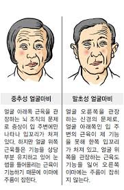 눈썹이나 눈의 움직임은 보존되지만 입술 아래가 비대칭